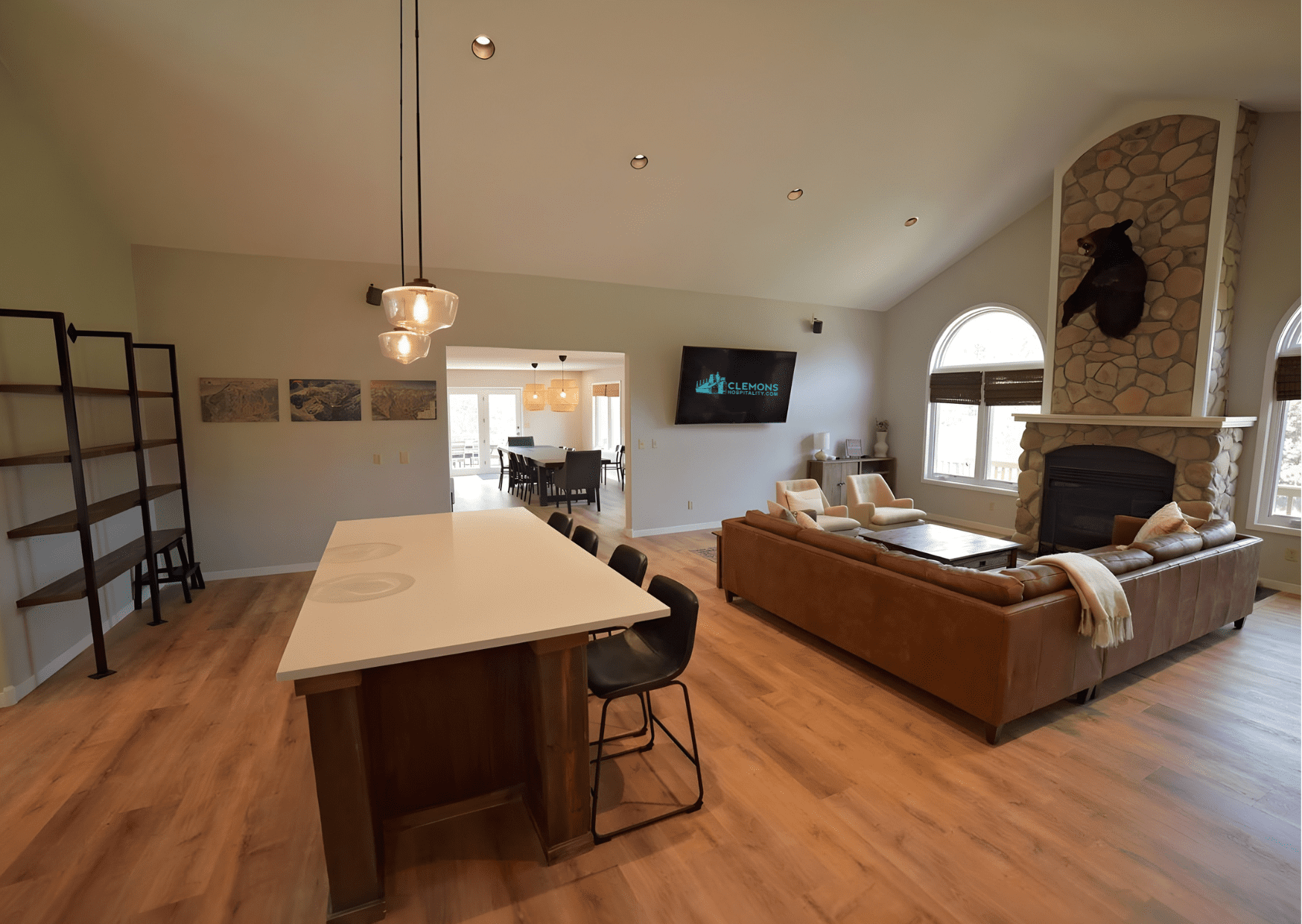 Open, indoor shared spaces for entertaining large groups comfortably.